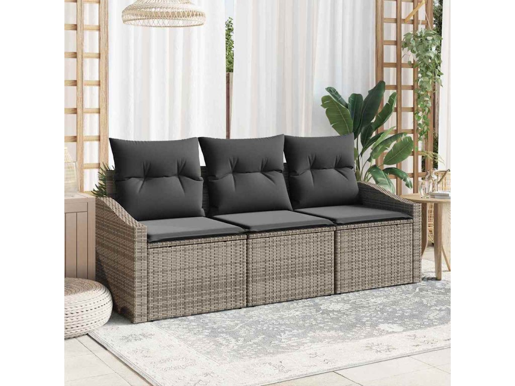 Sada zahradních pohovek s polštářem 3 pcs Šedá polyratan 3355248