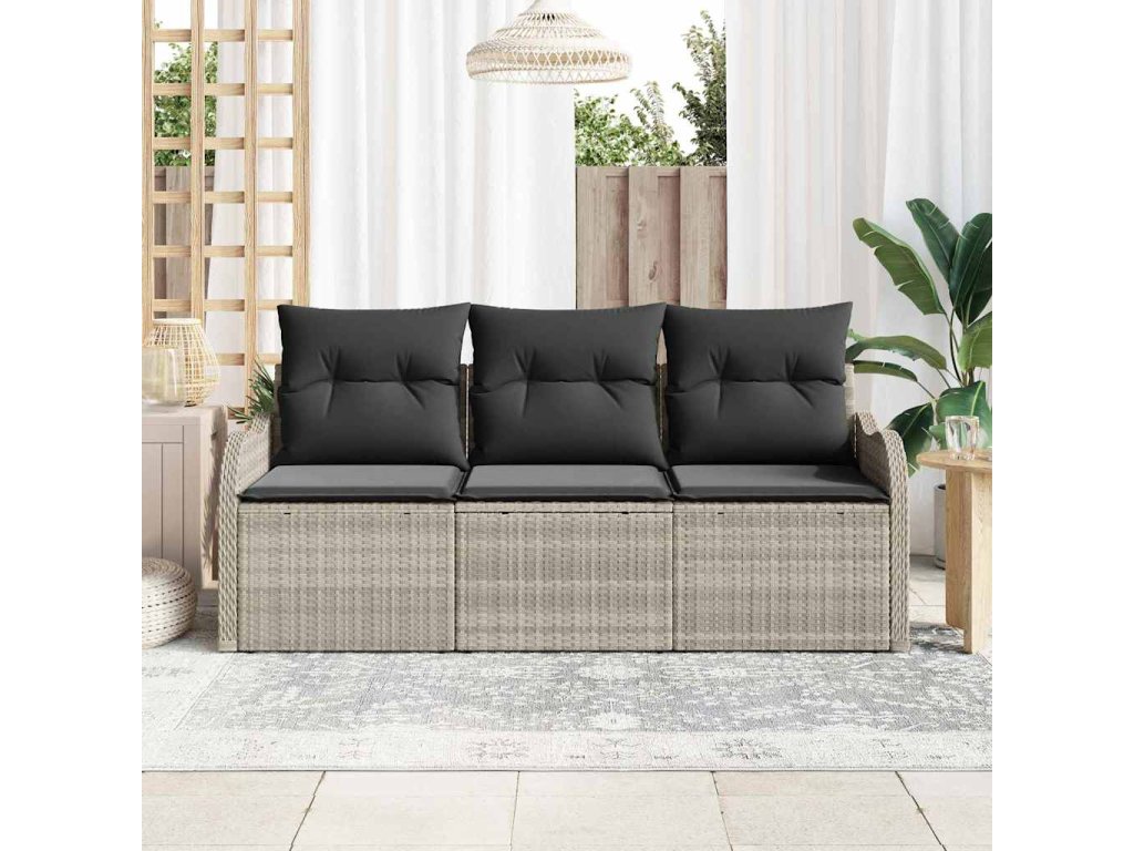 Sada zahradních pohovek s polštářem 3 pcs Světle šedá polyratan 3345562