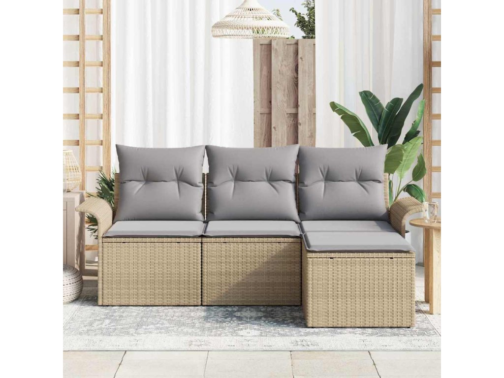 Sada zahradních pohovek s polštářem 4 pcs Béžová Poly ratan 3353979