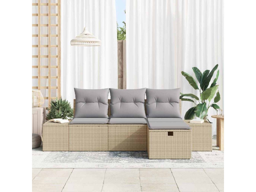 Sada zahradních pohovek s polštářem 4 pcs Béžová Poly ratan 3359349