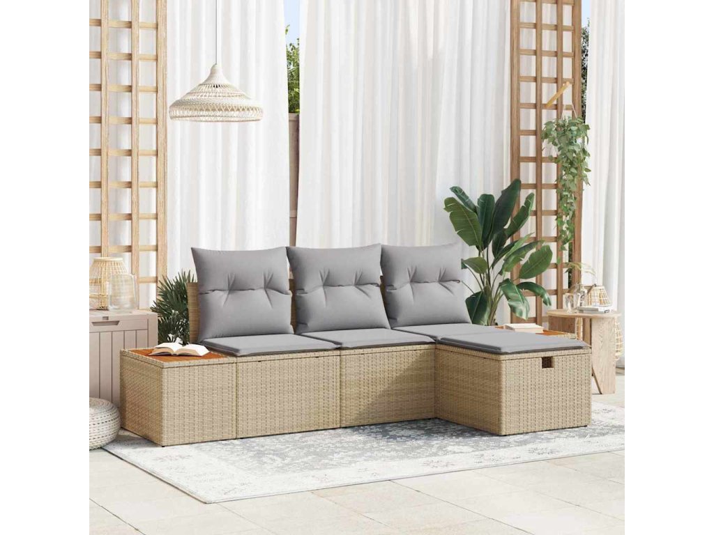 Sada zahradních pohovek s polštářem 4 pcs Béžová Poly ratan 3359617