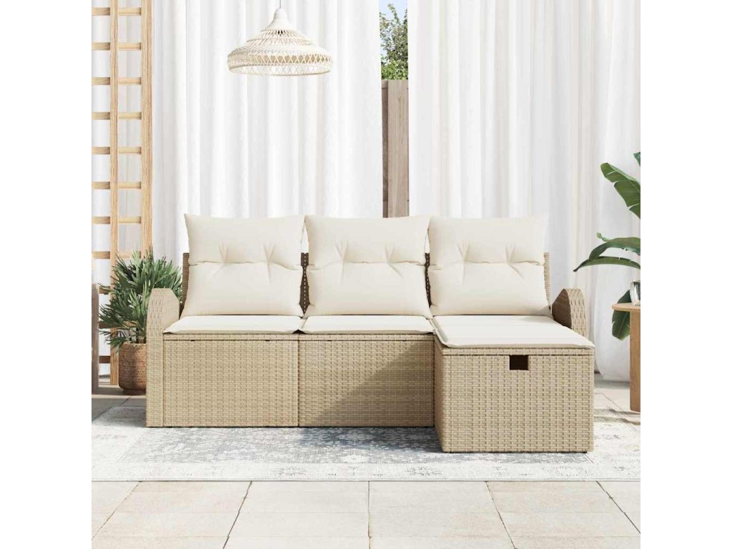 Sada zahradních pohovek s polštářem 4 pcs Béžová Poly ratan 3360382