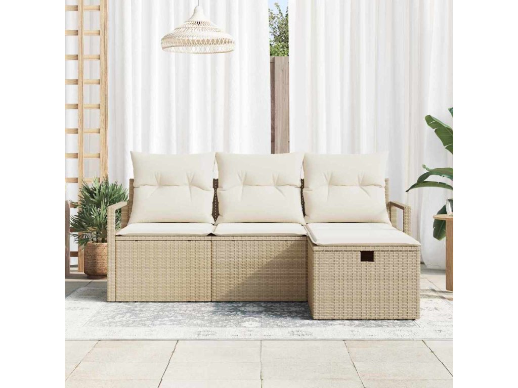 Sada zahradních pohovek s polštářem 4 pcs Béžová Poly ratan 3360482