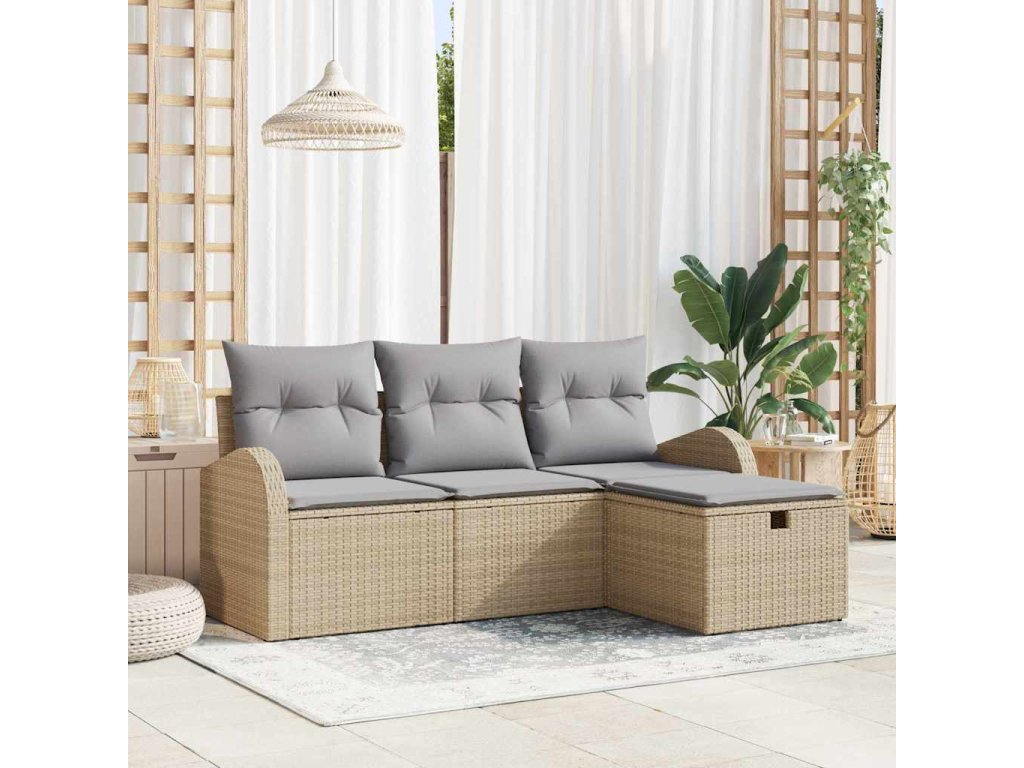 Sada zahradních pohovek s polštářem 4 pcs Béžová polyratan 3360381