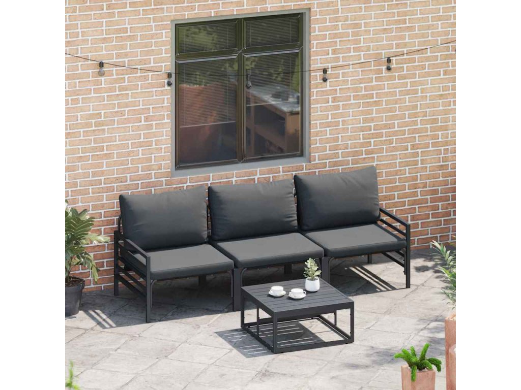Sada zahradních pohovek s polštářem 4 pcs Černá Ocel 3378963