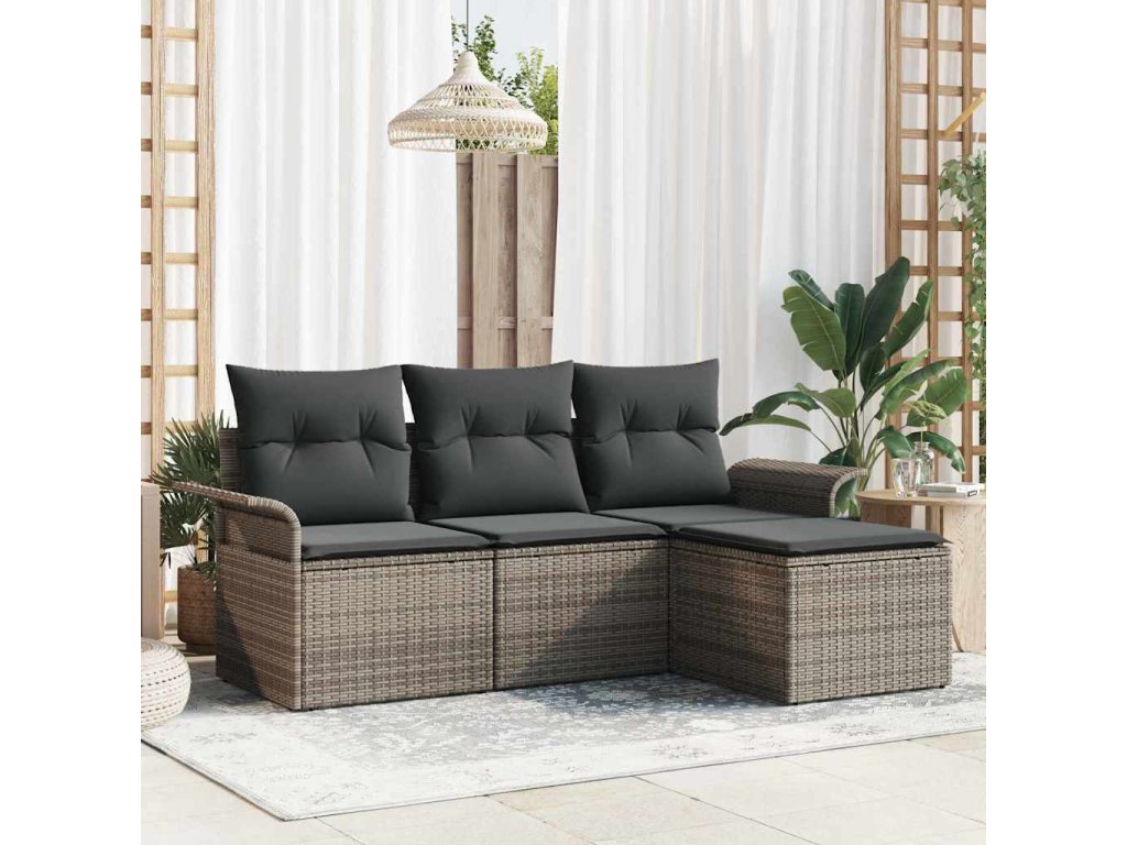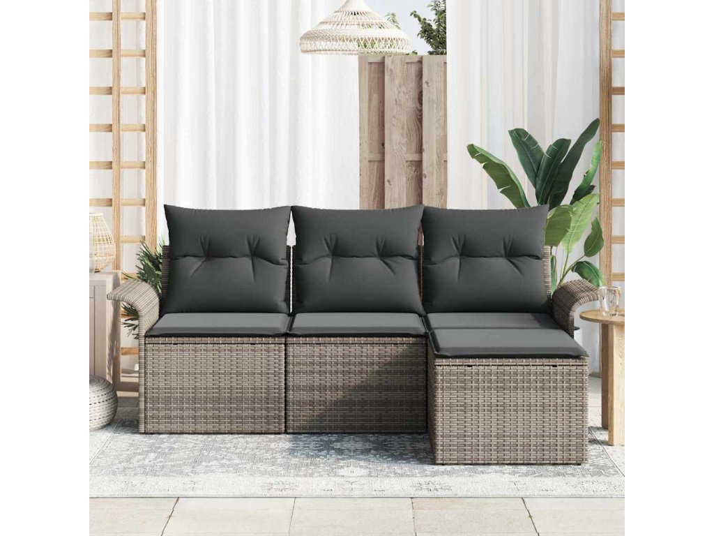 Sada zahradních pohovek s polštářem 4 pcs Šedá Poly ratan 3353978