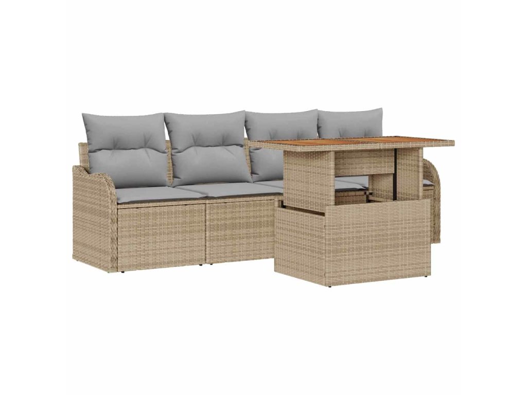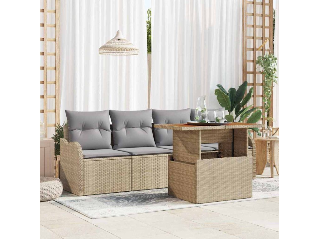 - Prémiové materiály: Set kombinuje odolnost poly ratanu s krásným akáciovým dřevem, které odolává UV záření a dešti. Tato kombinace zajišťuje dlouhou životnost a nízkou údržbu.