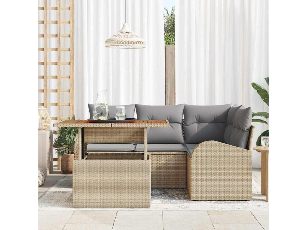 - Praktické komponenty: Navrženo s užitečnými částmi, jako jsou křesla s úložným prostorem, rohové sedadlo, středové sedadlo a flexibilní zahradní stůl. Zakřivené opěrky z poly ratanu poskytují pohodlí a hezký vzhled z každého úhlu.