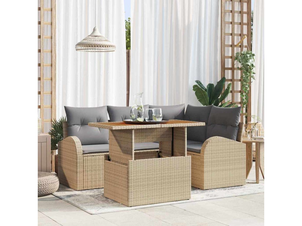 Sada zahradních pohovek s polštářem 5 pcs béžová a světle šedá 3349580