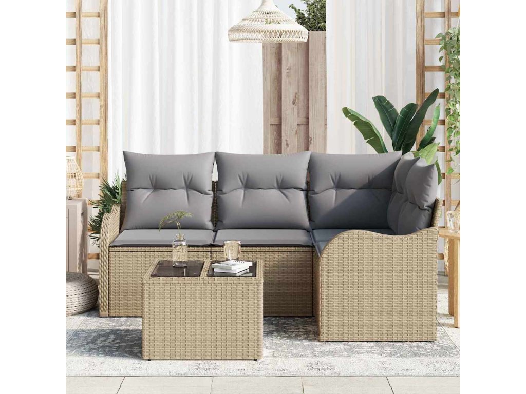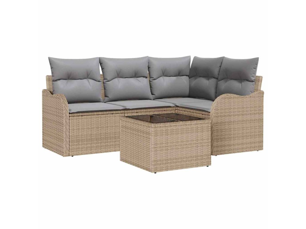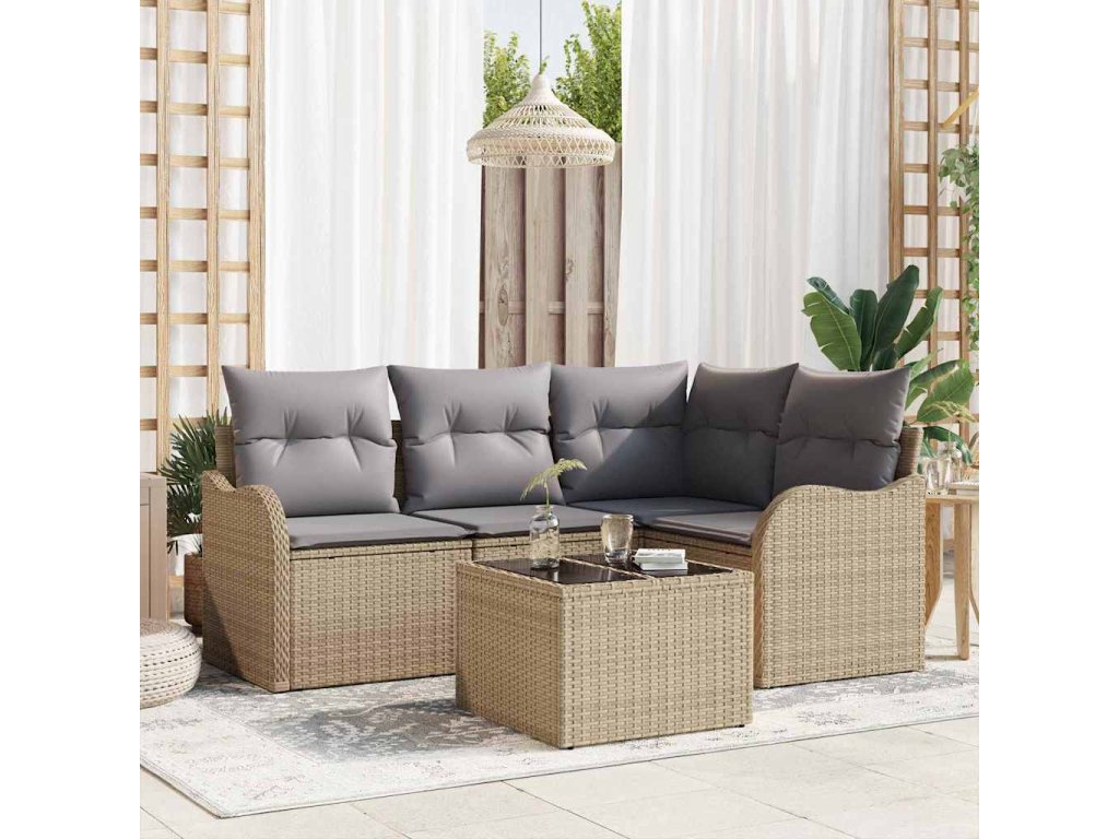 Sada zahradních pohovek s polštářem 5 pcs Béžová Poly ratan 3345690