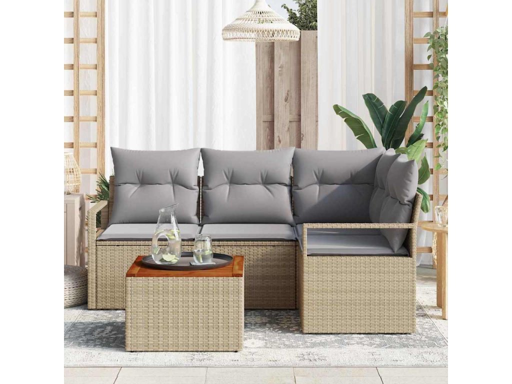 Sada zahradních pohovek s polštářem 5 pcs Béžová Poly ratan 3347700