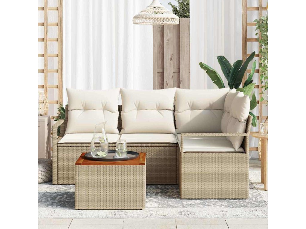 Sada zahradních pohovek s polštářem 5 pcs Béžová Poly ratan 3347701