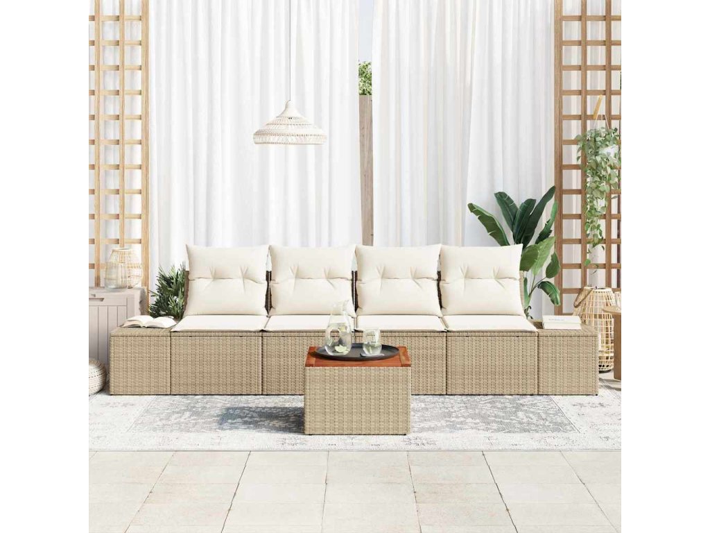 Sada zahradních pohovek s polštářem 5 pcs Béžová Poly ratan 3347890