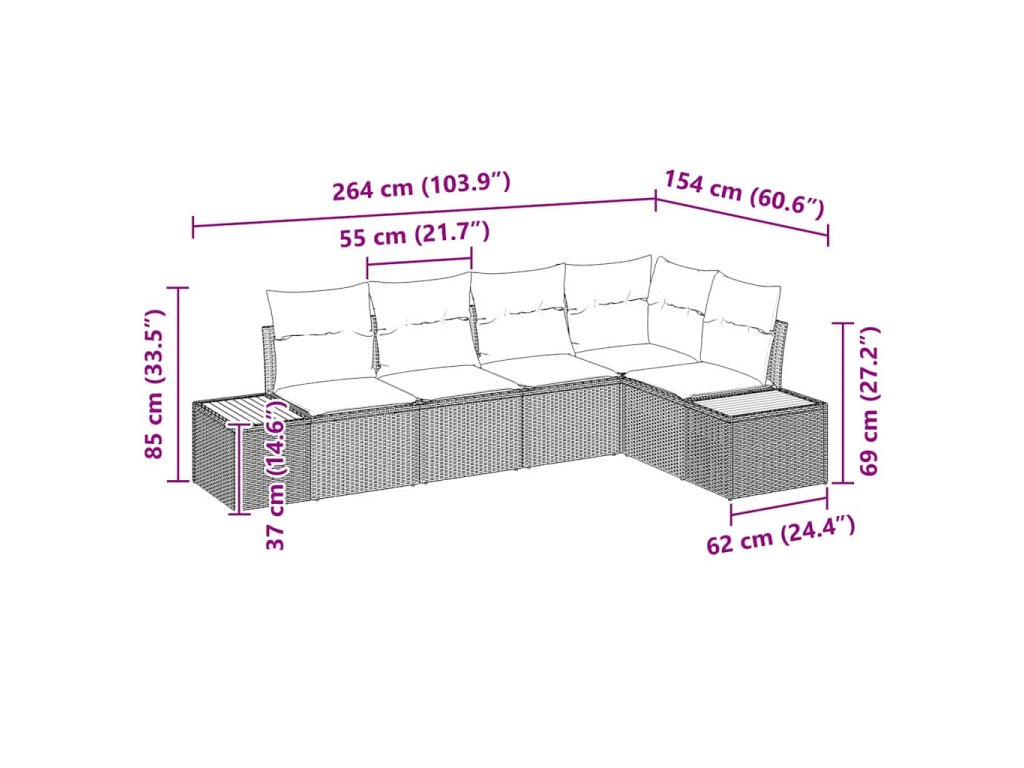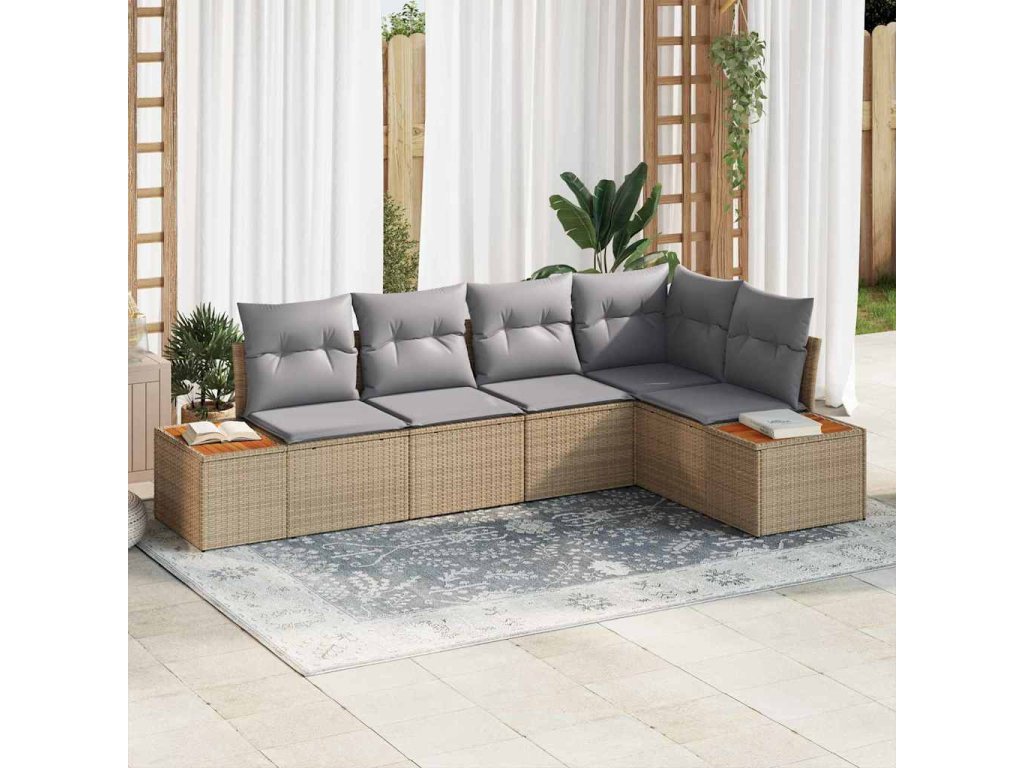 Sada zahradních pohovek s polštářem 5 pcs Béžová Poly ratan 3348086