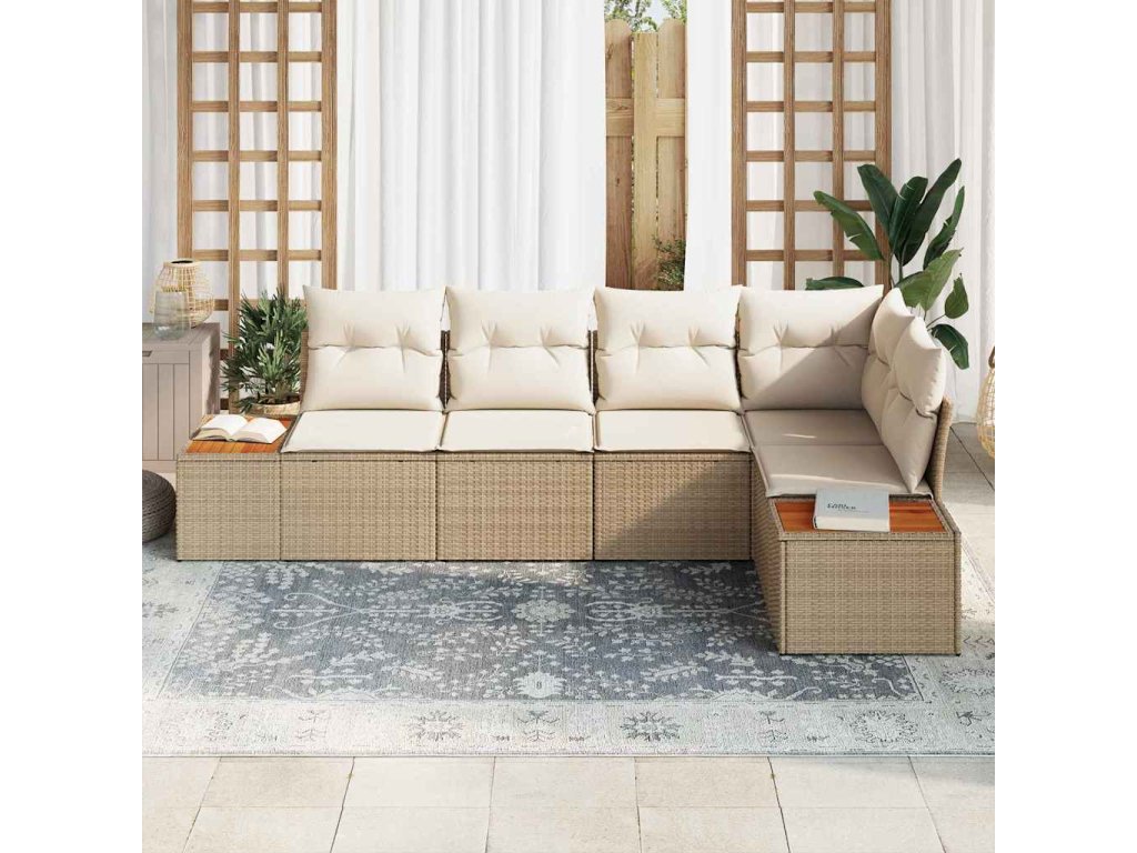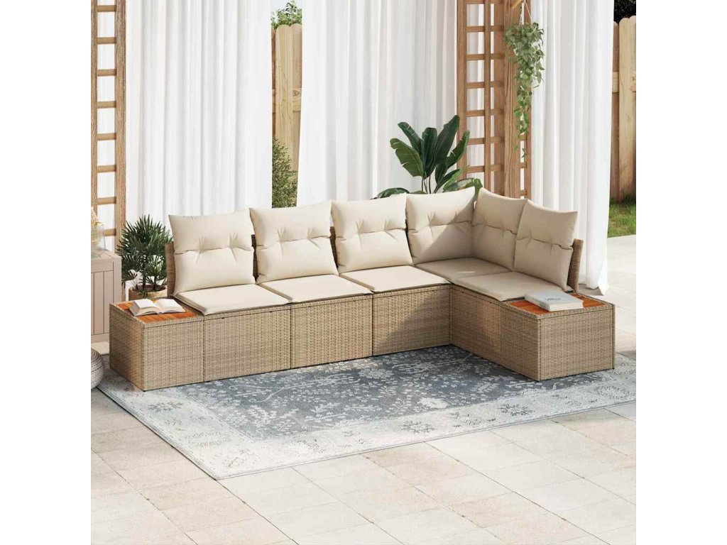 Sada zahradních pohovek s polštářem 5 pcs Béžová Poly ratan 3348087