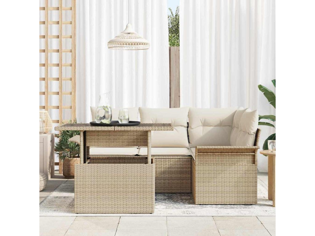 Sada zahradních pohovek s polštářem 5 pcs Béžová Poly ratan 3348277