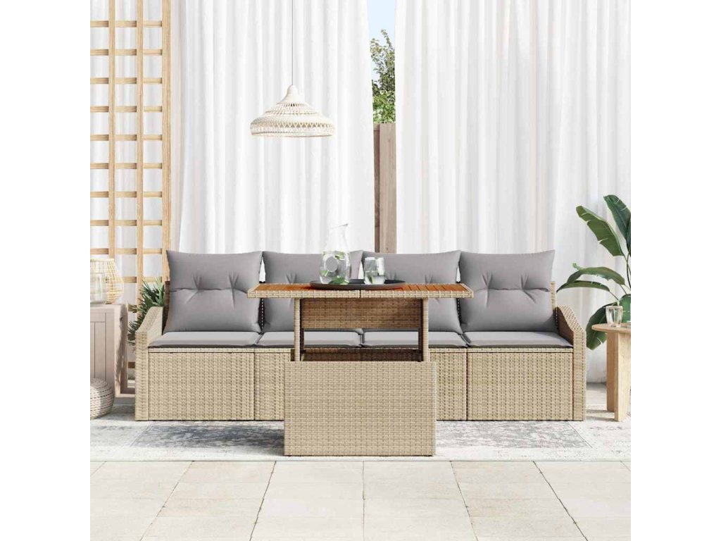 Sada zahradních pohovek s polštářem 5 pcs Béžová Poly ratan 3349769