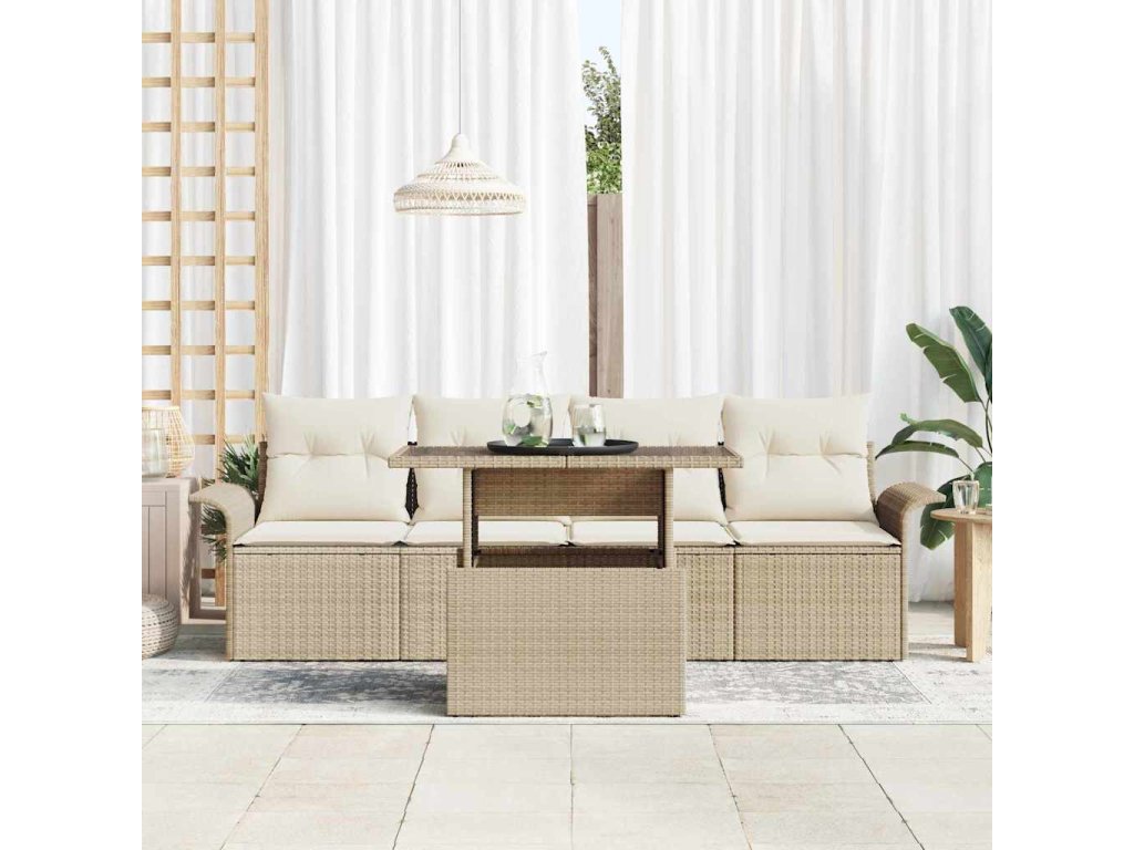 Sada zahradních pohovek s polštářem 5 pcs Béžová Poly Ratan 3356924