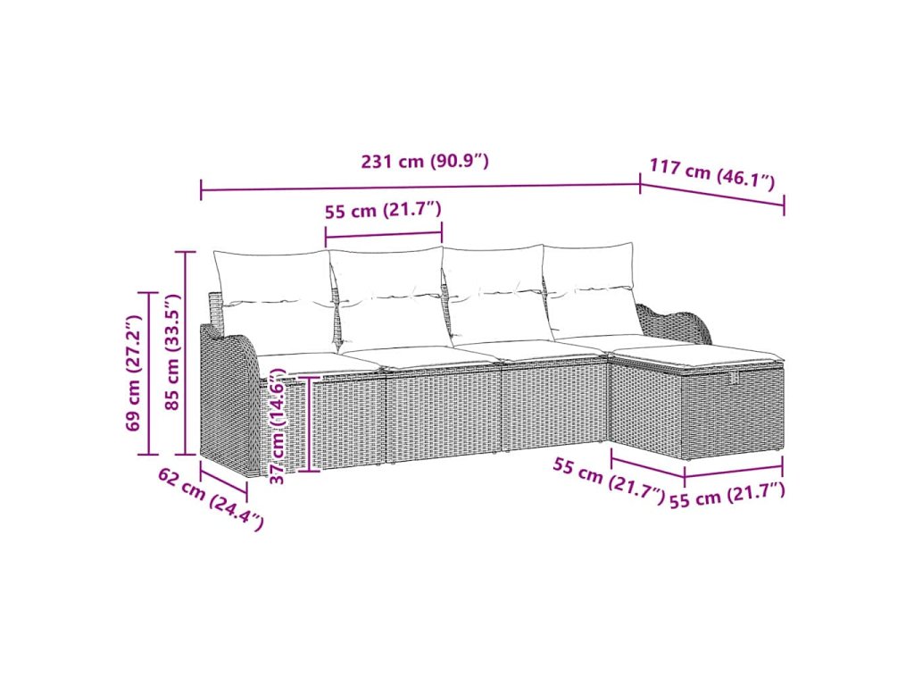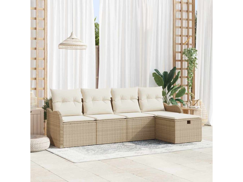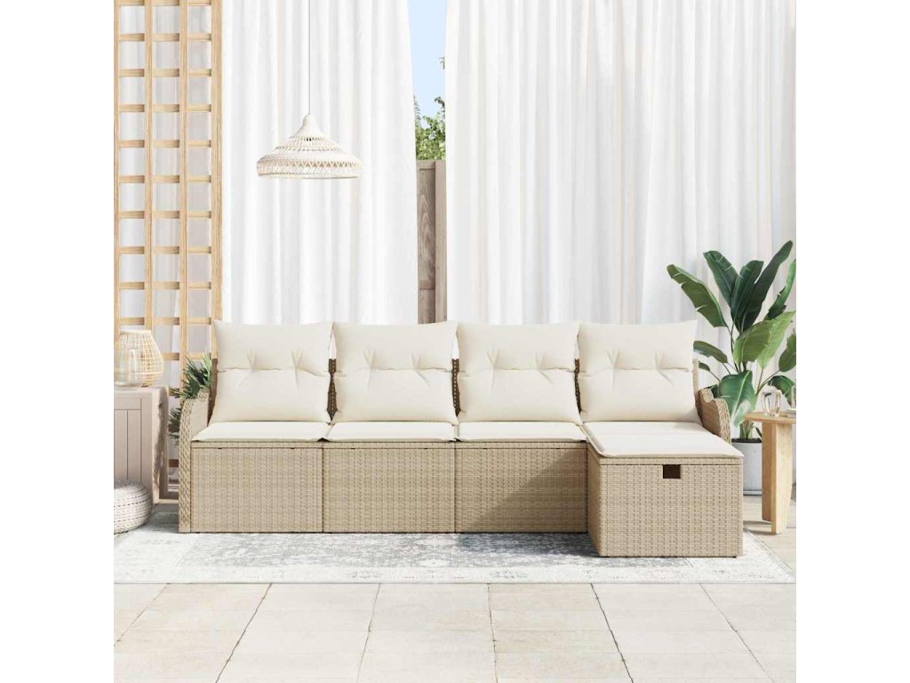 Sada zahradních pohovek s polštářem 5 pcs Béžová Poly ratan 3360292
