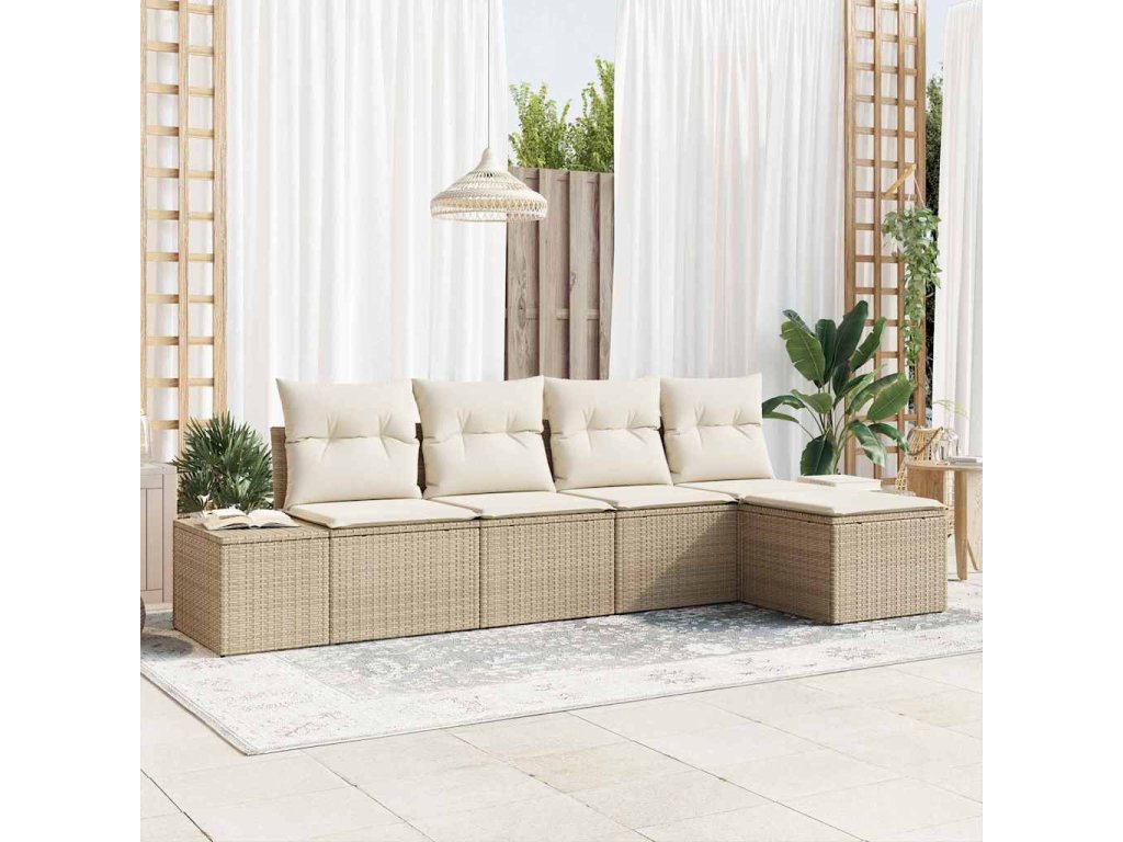 Sada zahradních pohovek s polštářem 5 pcs Béžová polyratan 3347021