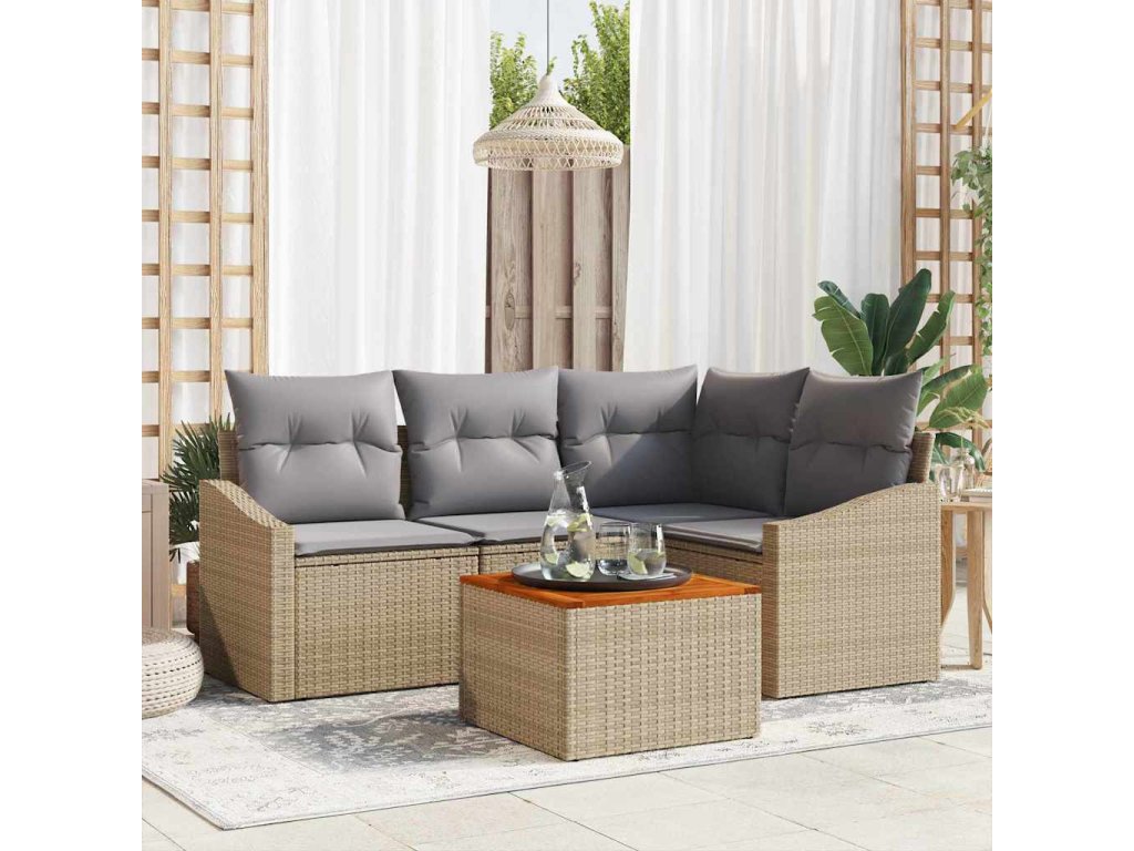Sada zahradních pohovek s polštářem 5 pcs Béžová polyratan 3347826