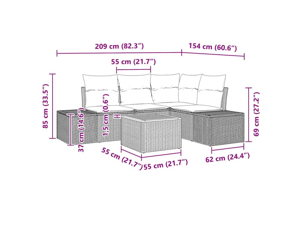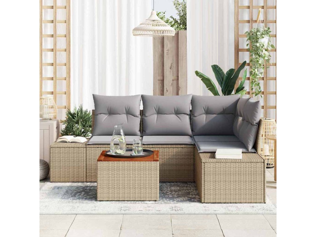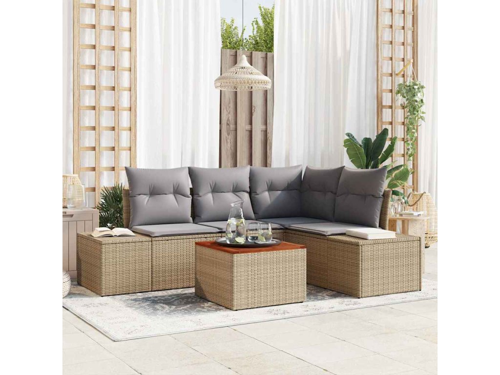 Sada zahradních pohovek s polštářem 5 pcs Béžová polyratan 3347952