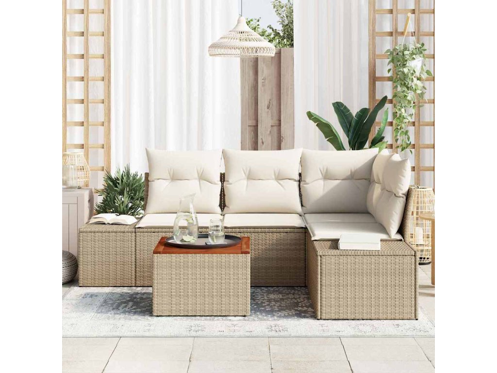 Sada zahradních pohovek s polštářem 5 pcs Béžová polyratan 3347953