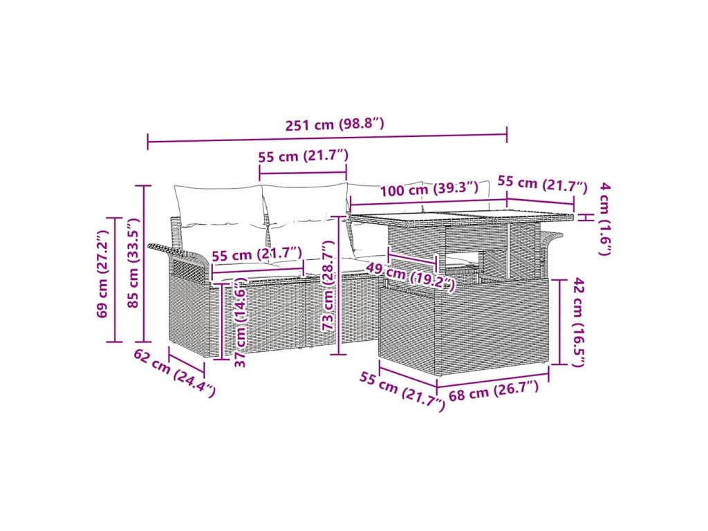 - Pohodlné polštáře zahrnuty: Set zahrnuje venkovní polštáře z odolného polyesteru, které jsou navržené pro komfort a styl. Tyhle měkké polštáře ti poskytnou podporu a pořád si udrží svůj lstivý vzhled i po vystavení venkovním podmínkám.