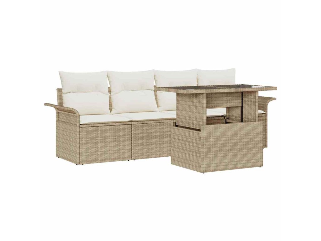 Sada zahradních pohovek s polštářem 5 pcs Béžová polyratan 3348187