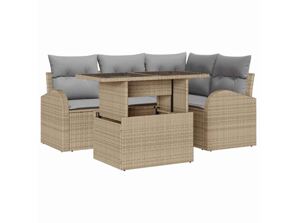 Sada zahradních pohovek s polštářem 5 pcs Béžová polyratan 3348636