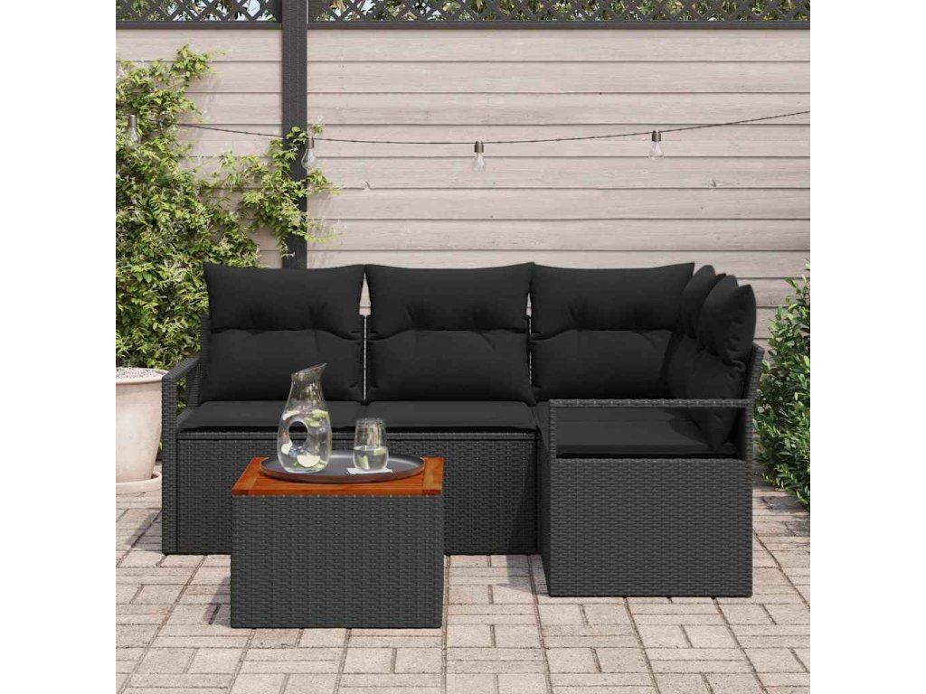 Sada zahradních pohovek s polštářem 5 pcs Černá Poly ratan 3347702
