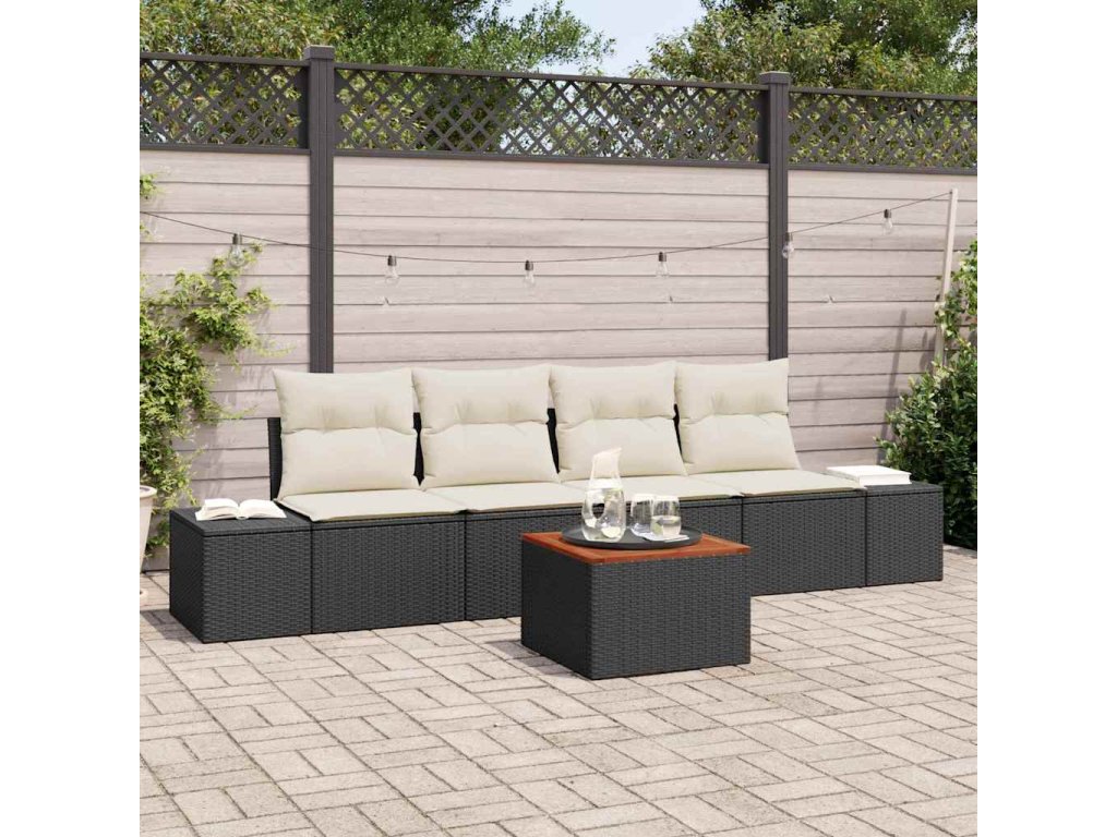 Sada zahradních pohovek s polštářem 5 pcs Černá Poly ratan 3347887