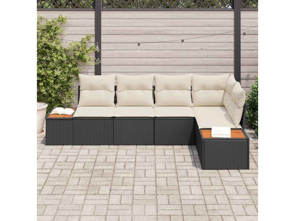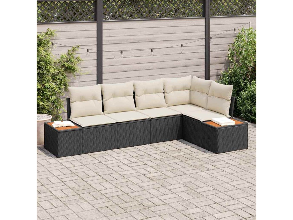 Sada zahradních pohovek s polštářem 5 pcs Černá Poly ratan 3348083