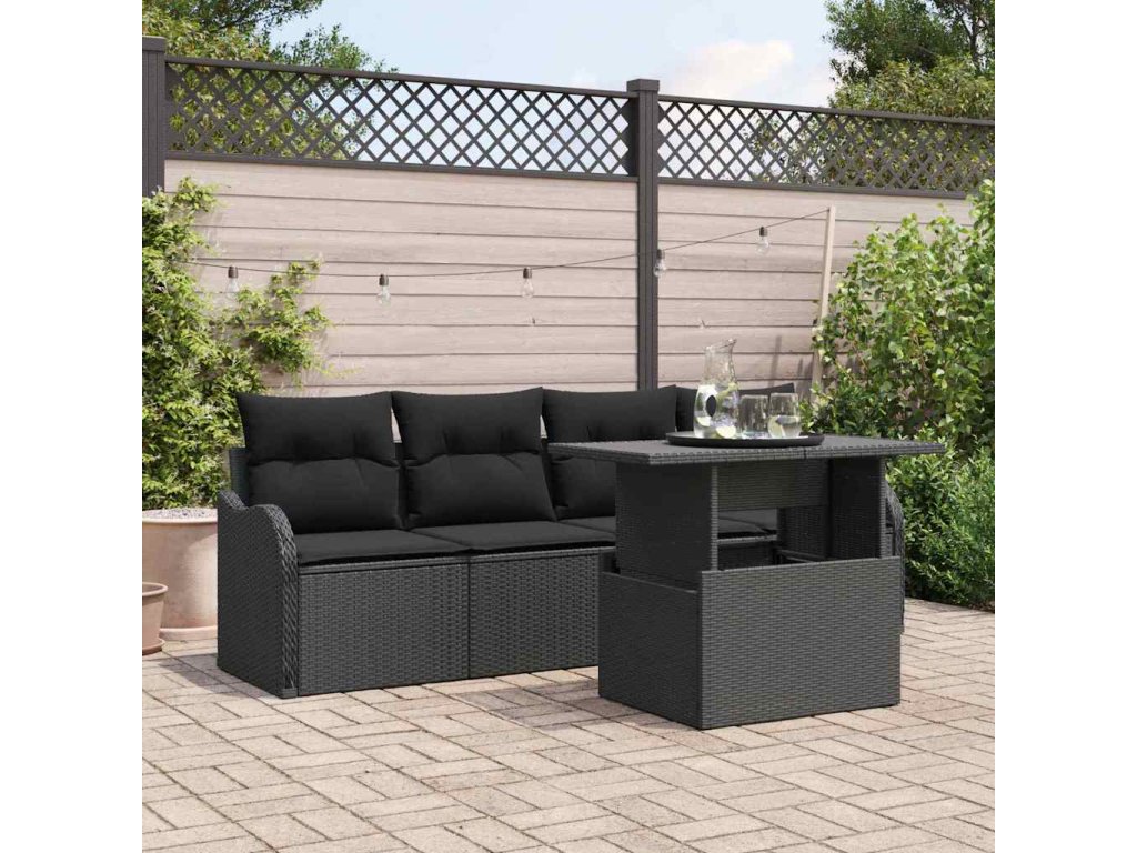 Sada zahradních pohovek s polštářem 5 pcs Černá Poly ratan 3348369