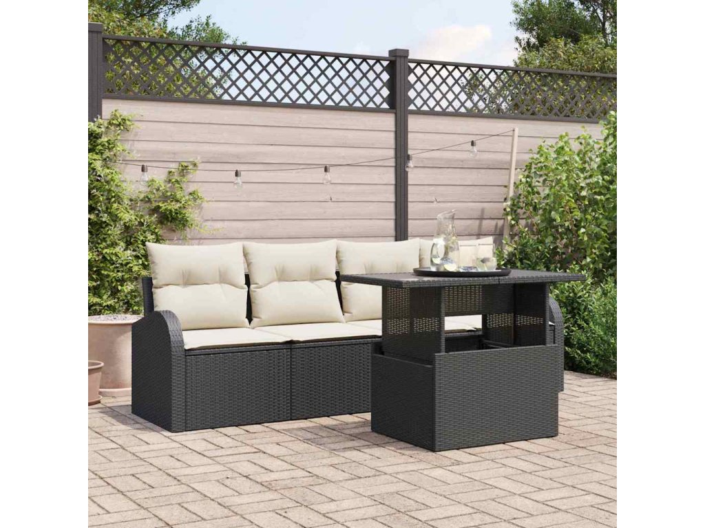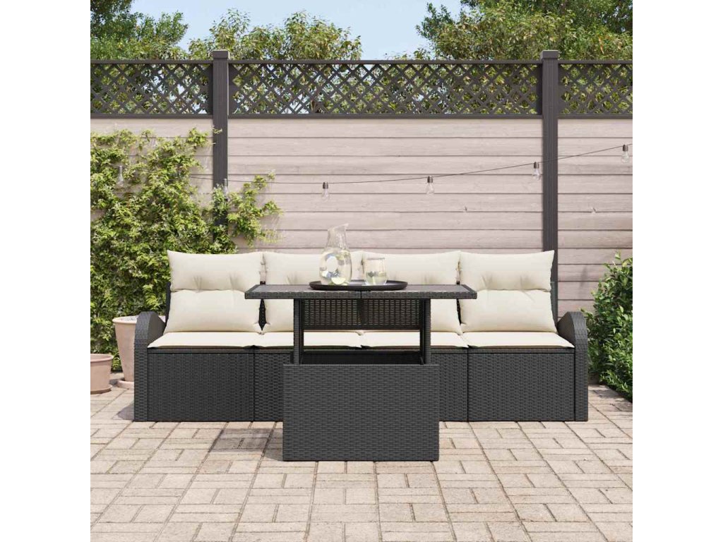 Sada zahradních pohovek s polštářem 5 pcs Černá Poly ratan 3348543