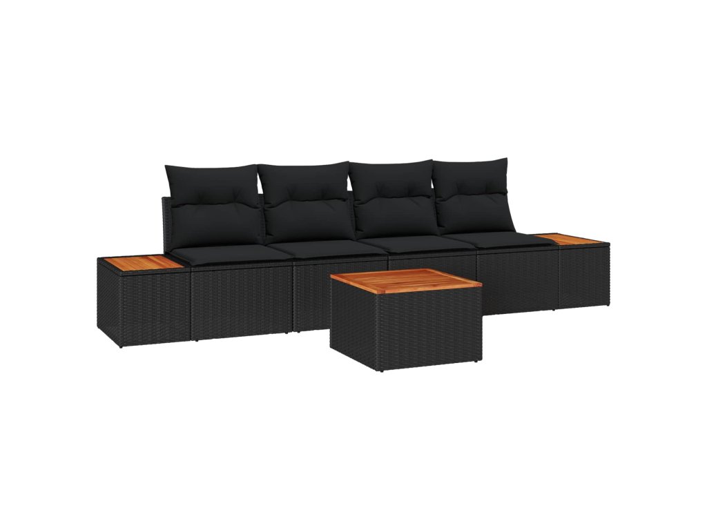 Sada zahradních pohovek s polštářem 5 pcs Černá Poly ratan 3356688