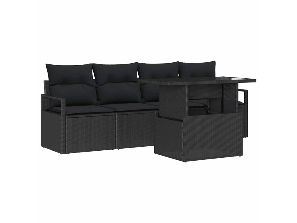Sada zahradních pohovek s polštářem 5 pcs Černá Poly ratan 3357466