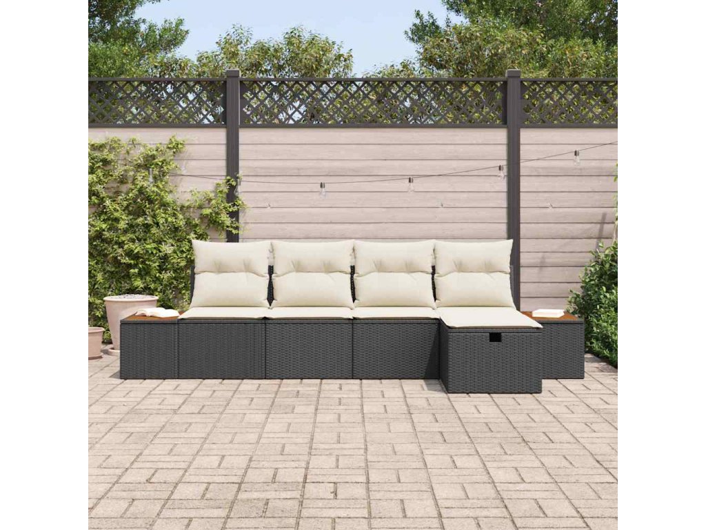 Sada zahradních pohovek s polštářem 5 pcs Černá Poly ratan 3359619