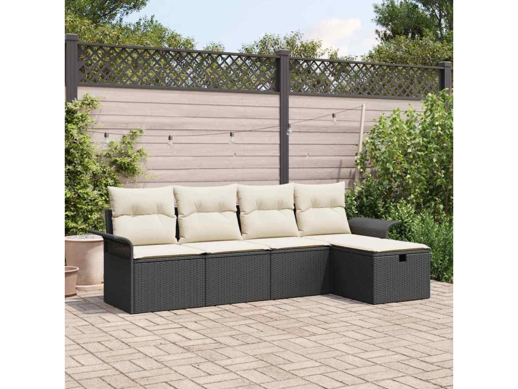Sada zahradních pohovek s polštářem 5 pcs Černá Poly ratan 3360188