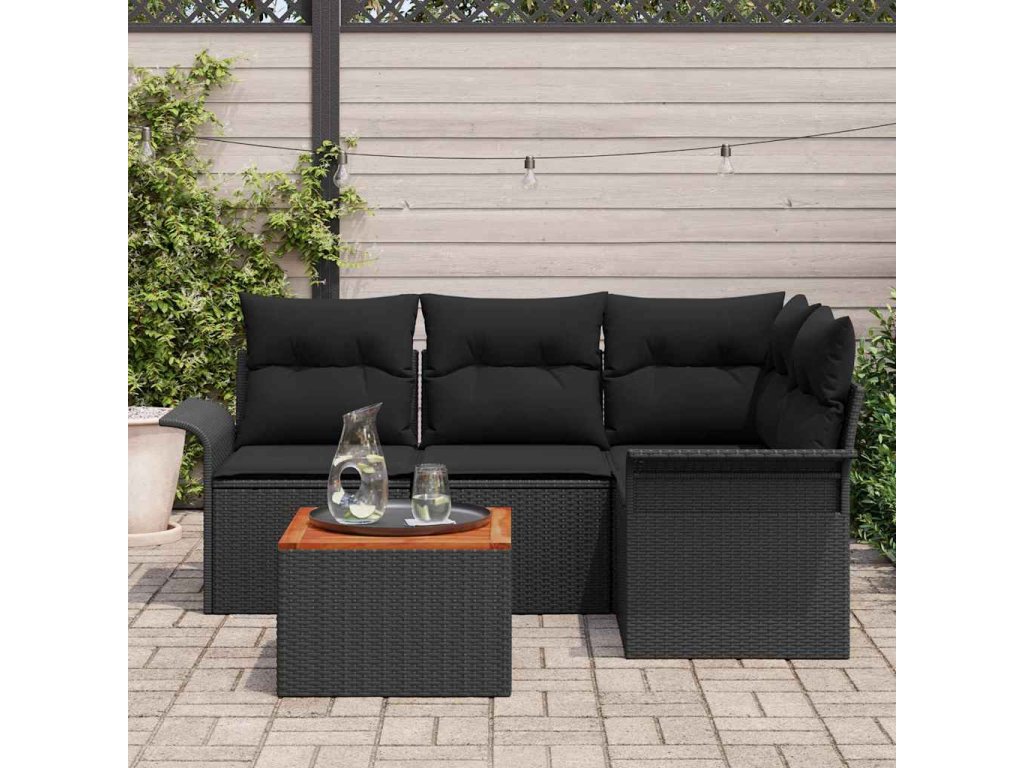 Sada zahradních pohovek s polštářem 5 pcs Černá polyratan 3347324