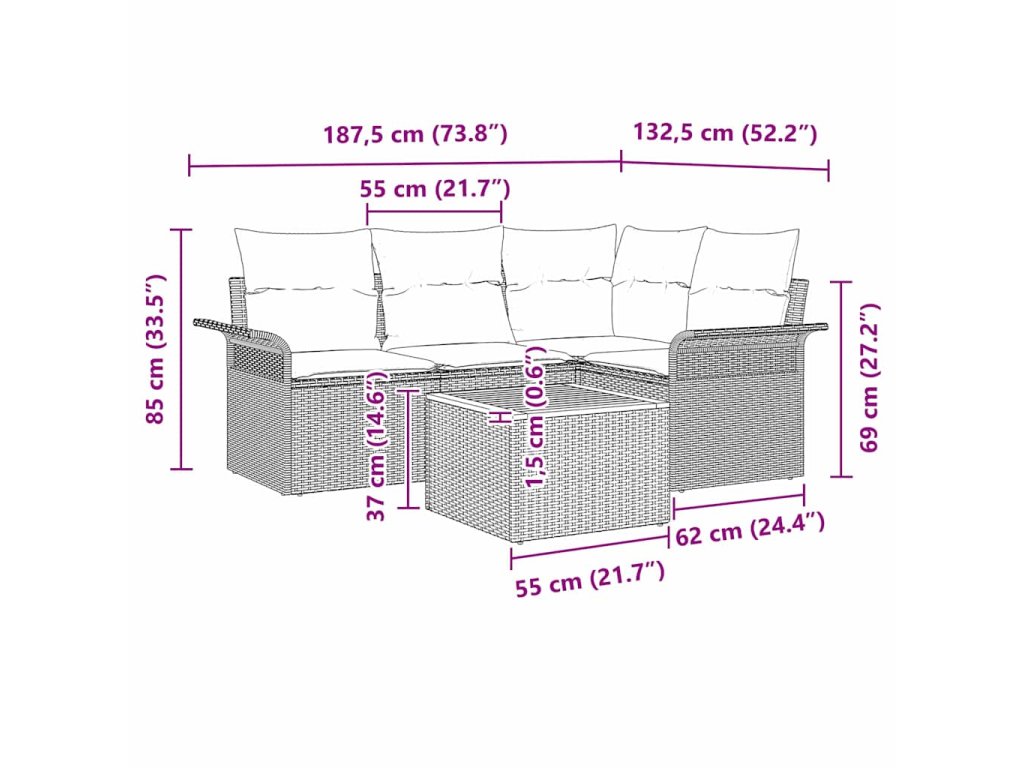 - 1 x rohové sedátko: 62 x 62 x 85 cm (DxŠxV)
