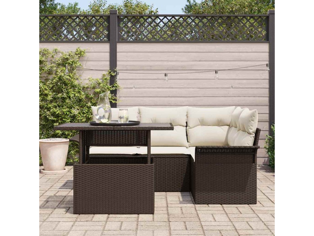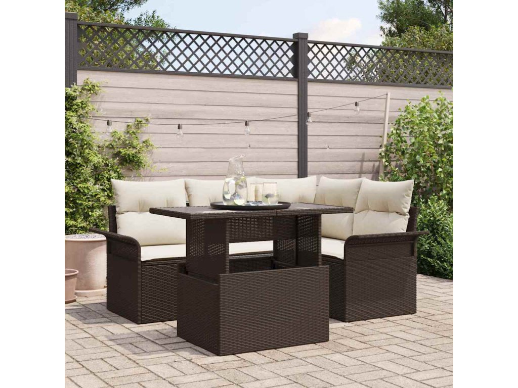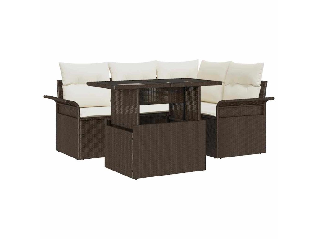 Sada zahradních pohovek s polštářem 5 pcs Hnědá Poly ratan 3348274