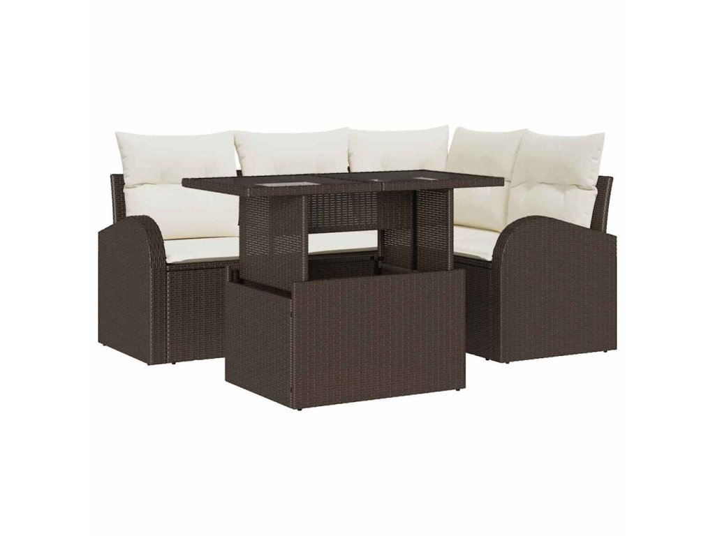 Sada zahradních pohovek s polštářem 5 pcs Hnědá Poly ratan 3348634