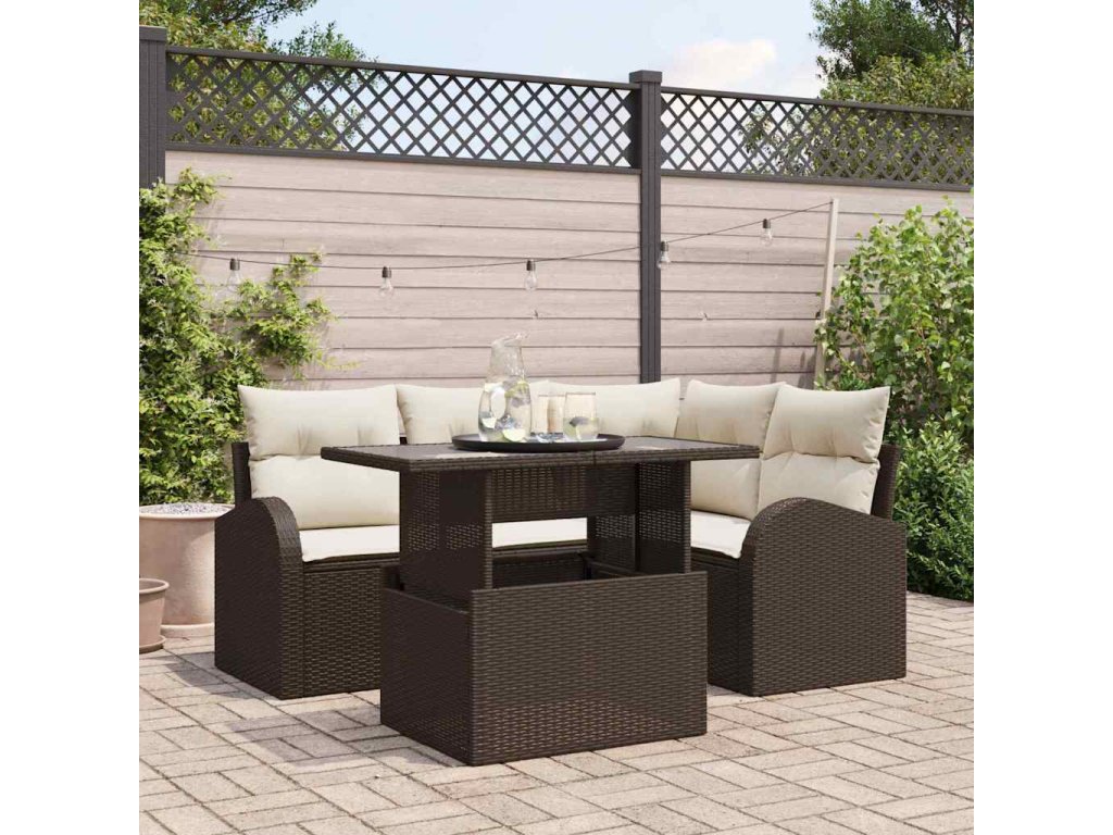 Sada zahradních pohovek s polštářem 5 pcs Hnědá Poly ratan 3357371