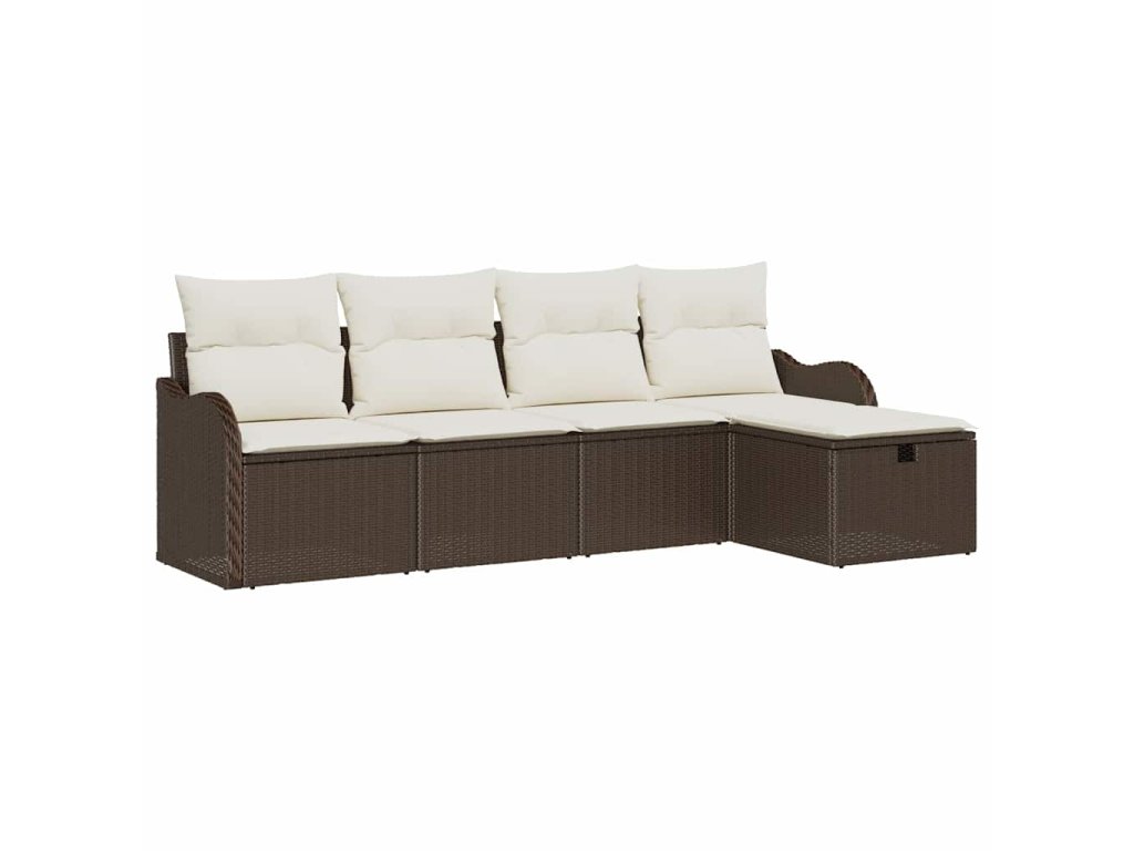 Sada zahradních pohovek s polštářem 5 pcs Hnědá Poly ratan 3360289