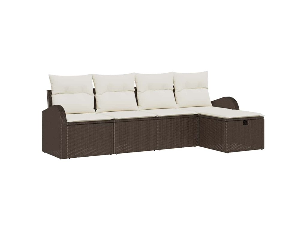 Sada zahradních pohovek s polštářem 5 pcs Hnědá Poly ratan 3360389