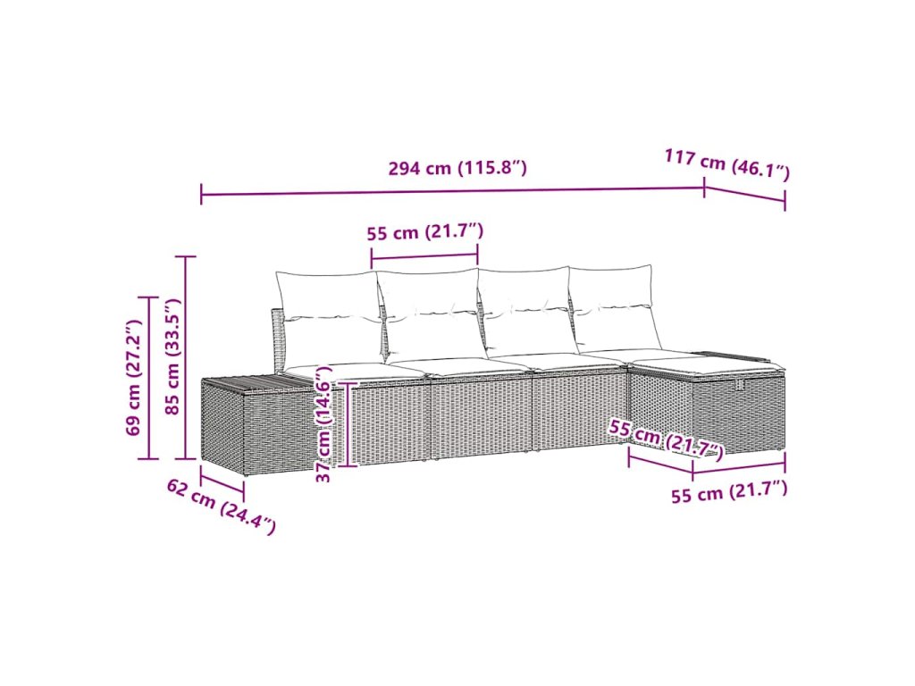 Tato moderní zahradní pohovková sada spojuje skvěle design a pohodlí. Přetvoří každou zahradu nebo terasu na útulné místo. S jednoduchým stylem a čistými liniemi je to vítěz pro každou venkovní plochu. Navržena s ohledem na milovníky moderního stylu, nabízí spoustu možností uspořádání. Je ideální, ať už se chystáš na setkání s přáteli nebo si jen tak odpočinout.