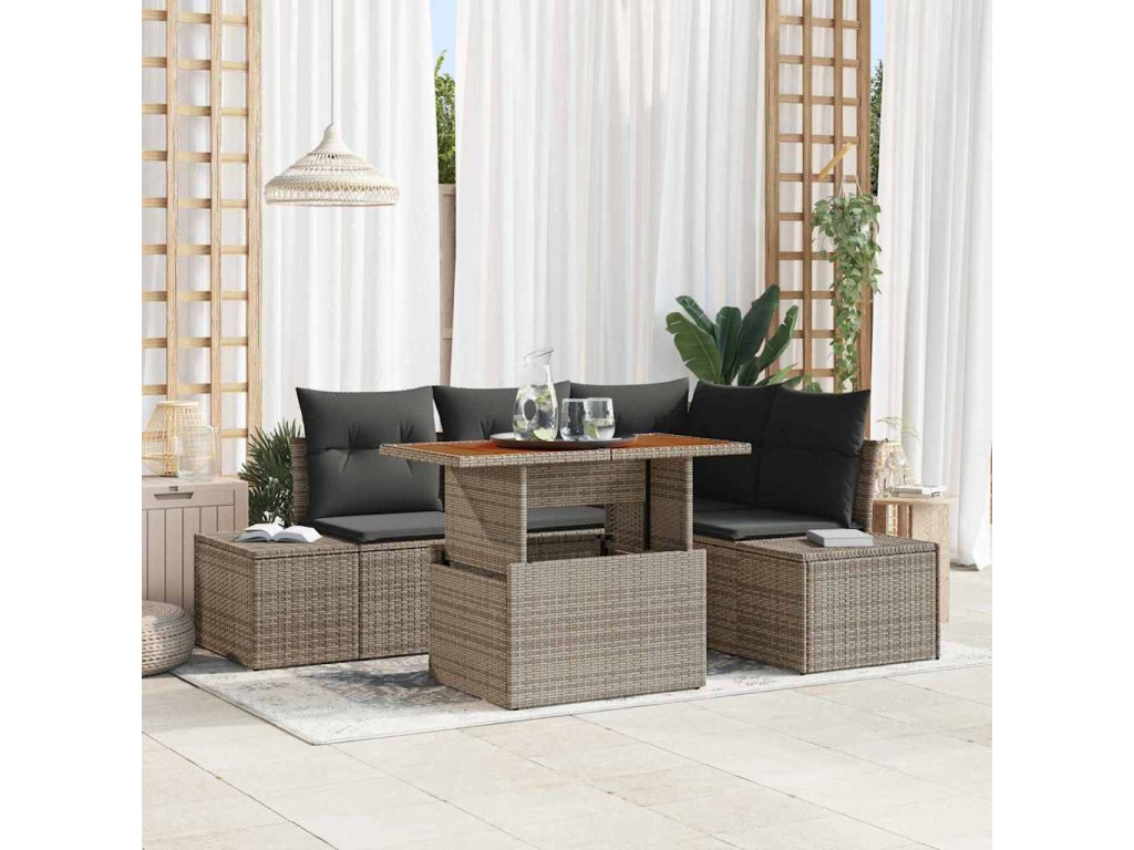 Sada zahradních pohovek s polštářem 5 pcs Šedá a hnědá 3349957