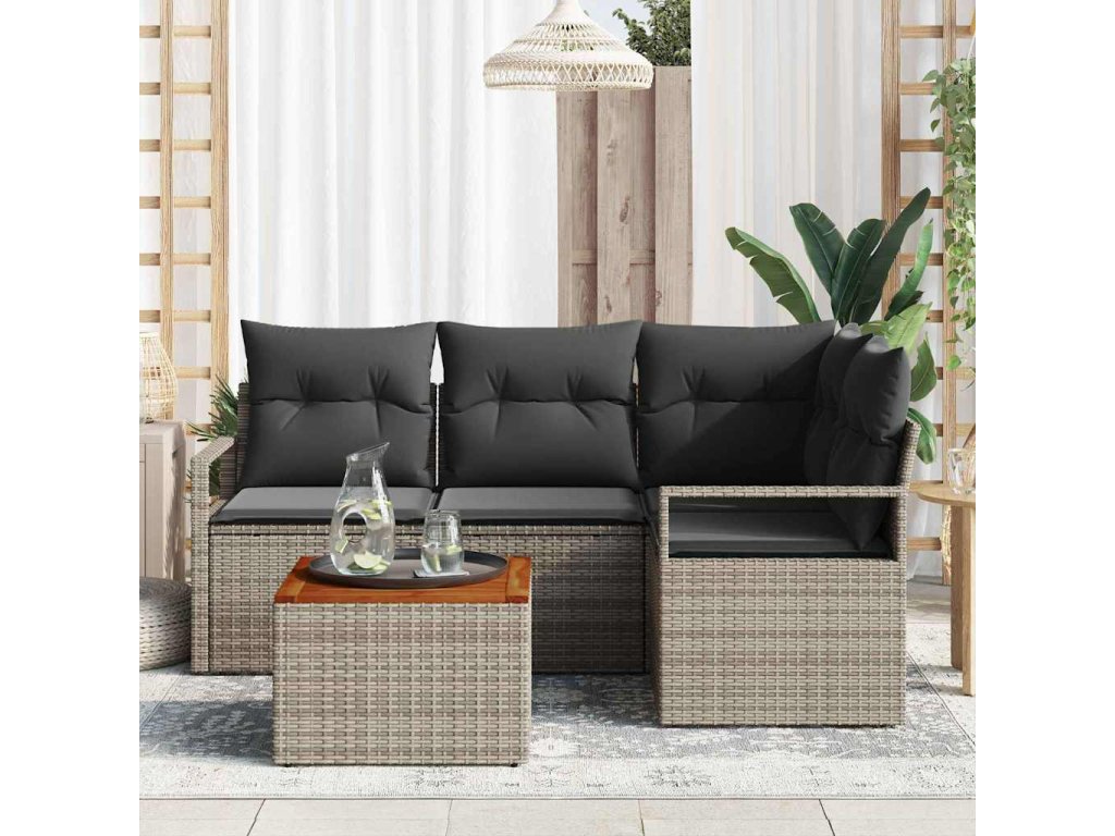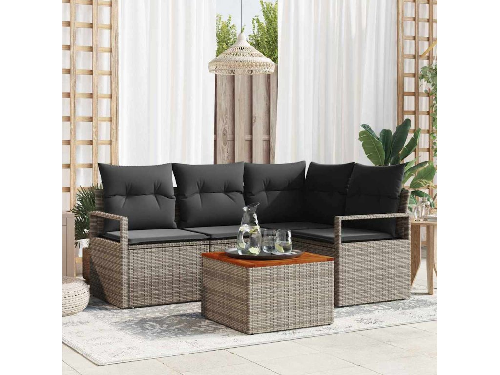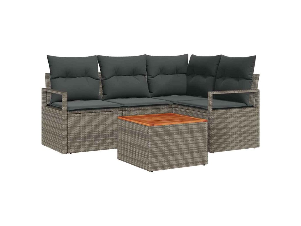 Sada zahradních pohovek s polštářem 5 pcs Šedá Poly ratan 3347699