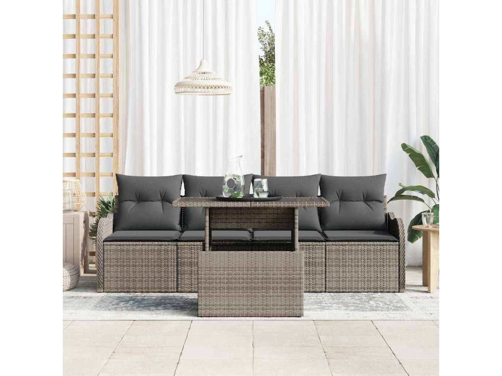 Sada zahradních pohovek s polštářem 5 pcs Šedá Poly ratan 3348365